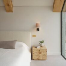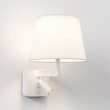 The Beaumont Reader Wall Lamp by Astro Lighting is designed for bedside use, featuring a compact die-cast zinc base with rounded corners. Its directional light and choice of fabric shade finishes make it a perfect reading companion.