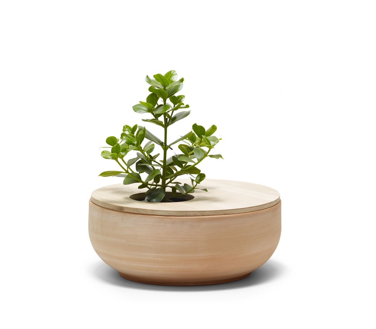 A handcrafted vase made from natural terracotta, showcasing minimalist design.