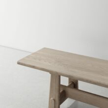 The Solid Wood Bench draws inspiration from the enduring structures of Eastern architecture, offering an appreciation for both cultural heritage and lasting craftsmanship. Crafted entirely from solid wood, the legs feature hand-finished convex and concave details, creating a visual illusion of timber jostling against one another. Reinforced with a supporting beam, the traditional trapezoid-shaped legs provide a strong and dependable foundation, while other timber details give the bench a striking resemblance to a pagoda’s gate.