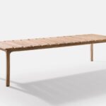 The Teak Sun Lounger by Ethnicraft features a reclinable back, solid teak construction, and integrated wheels for easy movement. Designed for comfort and durability.