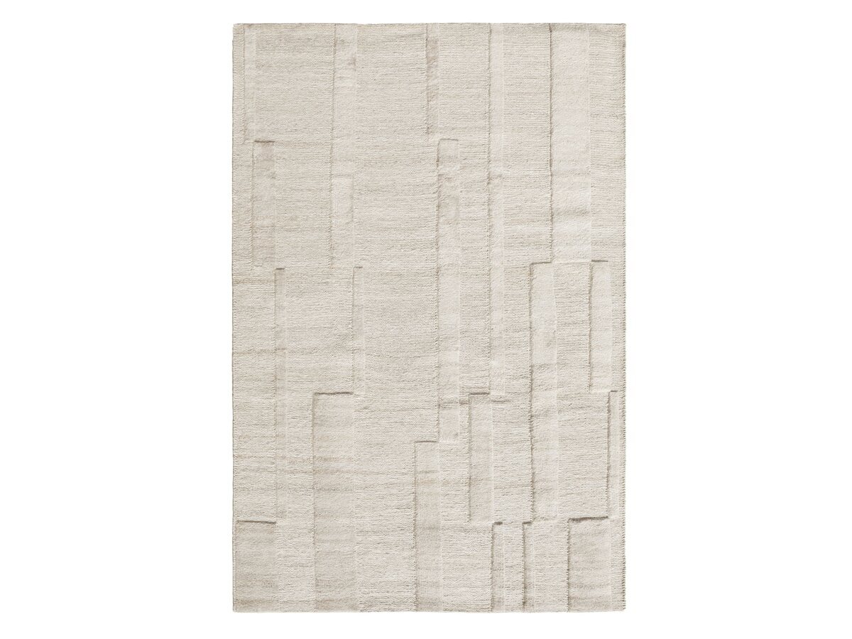 A handwoven rug made from recycled PET, suitable for both indoor and outdoor use.